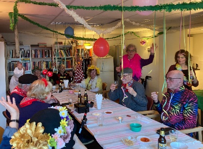 Een aantal vrijwilligers hebben op vrijdagmiddag 6 februari de recreatieruimte prachtig versierd voor de carnavalsmiddag.